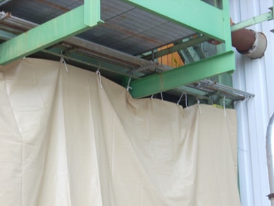 Protective Packaging assessed the work area and indicated that curtains would be needed in several areas of the plant to protect workers and equipment. Protective Packaging fashioned curtains from heavy duty material called AT-200; a PVC coated polyester scrim that is weather resistant and has a high tensile strength. Grommets along the top edge of the material made it easy to attach to the structure using nylon rope. Finally, zipper “doors” were added to allow for easy access.